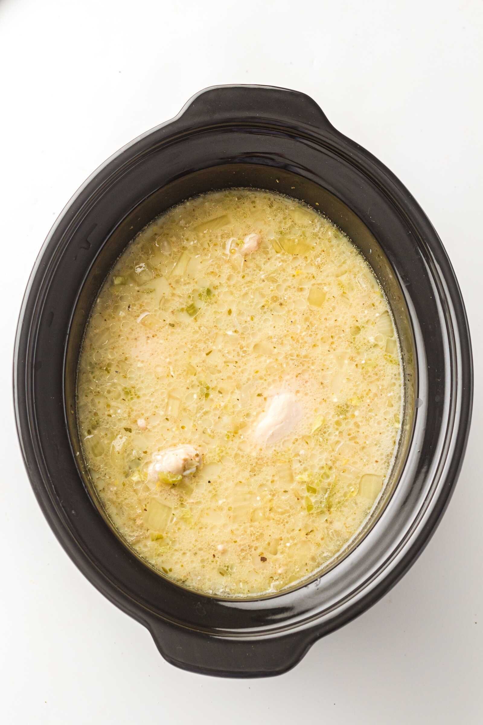 Yes! Simmer everything except the cream cheese and cream for about 25–30 minutes, until the chicken is cooked. Shred the chicken and add the creamy ingredients at the end.