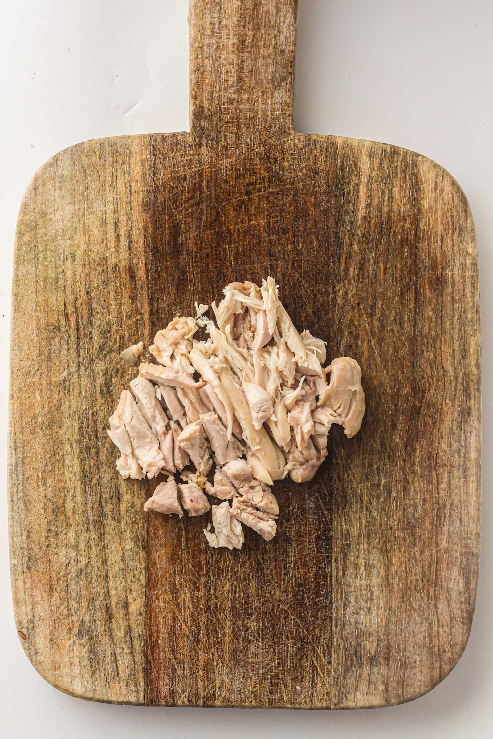 Use two forks to shred the chicken into bite-sized pieces.